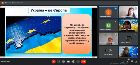 Учні 9-11 класів під час заходу «Україна – шлях до Європи» набули знань про історію створення Євросоюзу, прослухали гімн Європейського союзу, ознайомились з культурою, цікавими фактами, особливостями національної кухні, згадали, яку ціну заплатив український народ за свій європейський вибір та що означає прагнення бути європейцями.
