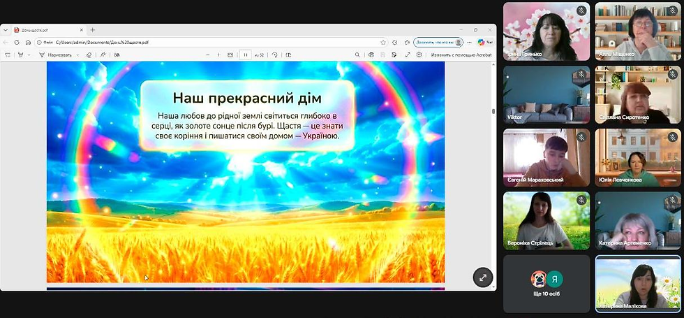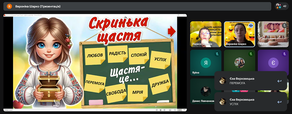 З нагоди відзначення цього дня у нашому ліцеї відбулися яскраві заходи, які об’єднали учнів та учениць у теплій атмосфері роздумів, відкриттів і щирих емоцій: для здобувачів освіти 1-4 класів заступником директора Маліковою К.О. проведено ігровий захід «Щастя - твоя суперсила!», а педагогом-організатором Шарко В.В. – інтерактивний захід «Щасливі діти України», який об’єднав учнів 5-11 класів.